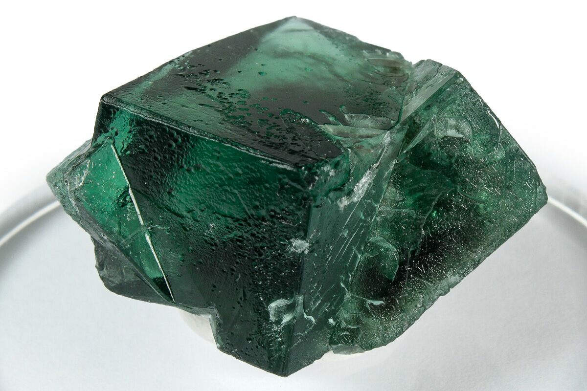 This is a gorgeous, 1.3" wide cubic fluorite twin cluster from the "Greedy Hog Pocket" (intersection of River Catcher Vein and Greenbank Vein) at the Diana Maria Mine in England. This particular kind of fluorite is unique in that it will actually fluoresce a beautiful purple-blue color in just natural light alone! Under short and long wave UV, these crystals fluoresce a vibrant purple color.