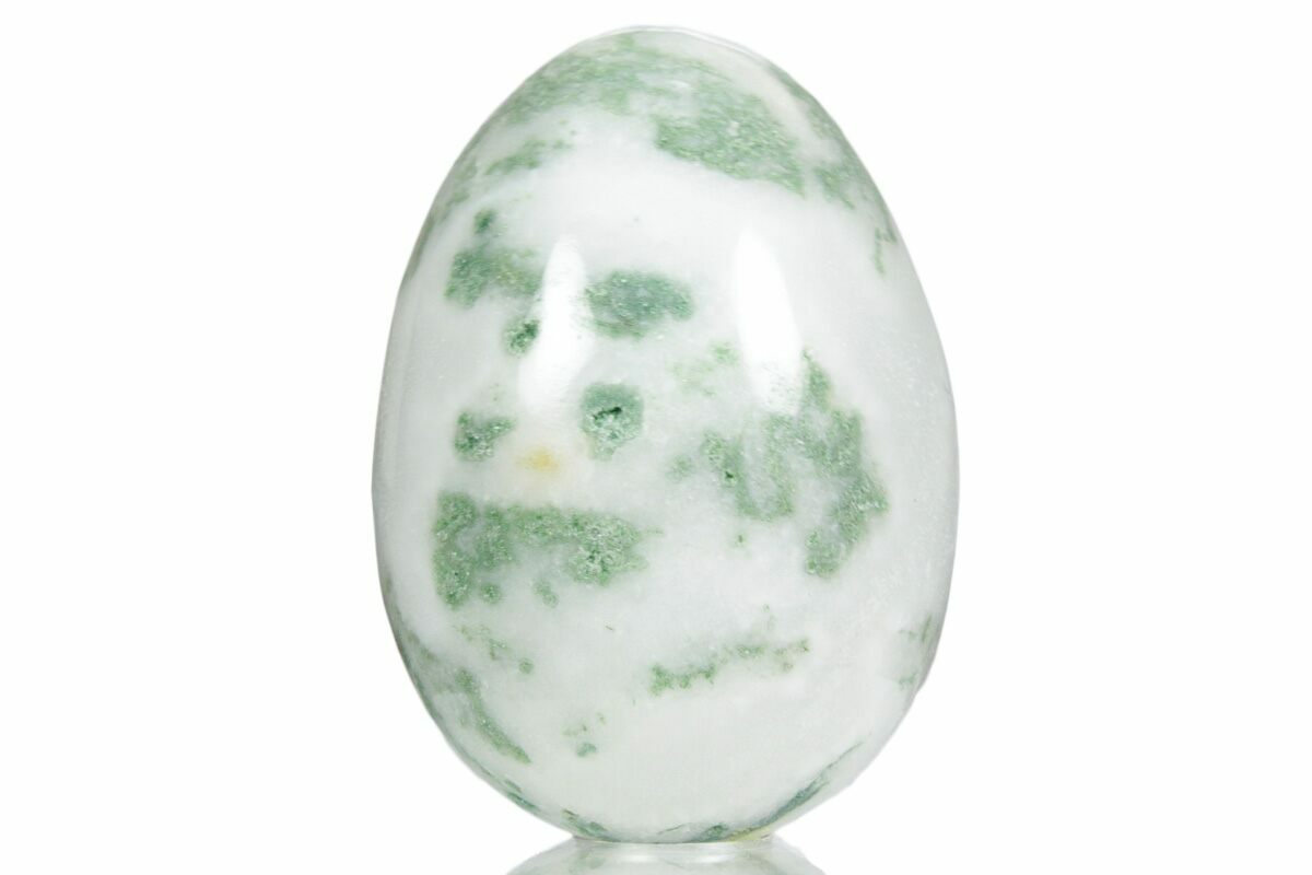 Despite the name, tree agate is actually a dendritic jasper, a variety of chalcedony marked by branching manganese and iron oxide inclusions that resemble miniature landscapes. These dark green, mossy “trees” stand out against a milky white background, creating a natural scene unique to each piece.