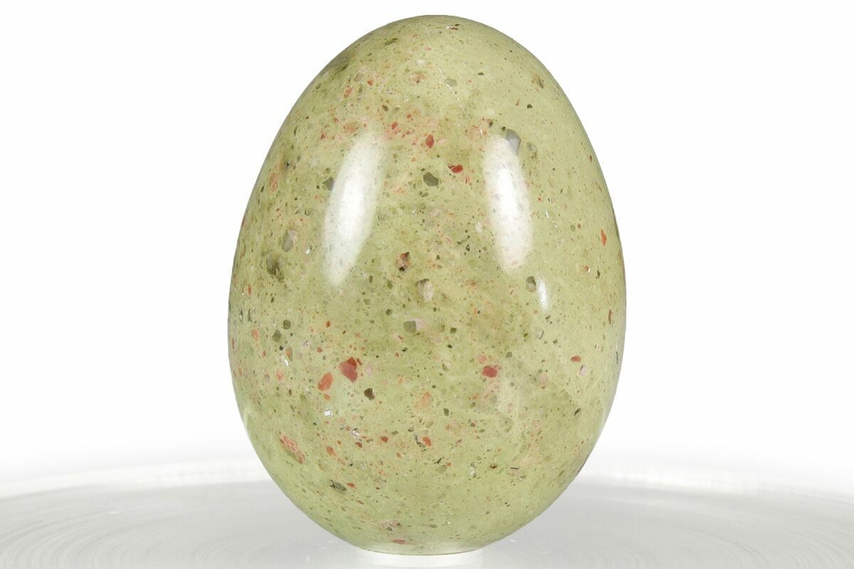 This is a 1.3" tall polished egg formed from unakite that was collected from South Africa.