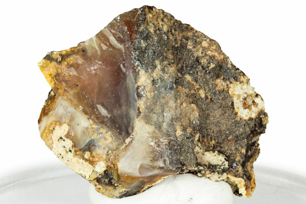 This is a beautiful 1.3" section of fire opal, collected in the remote mountains of Eastern Oregon. It is known for its vivid orange and yellow hues, obtaining its fiery colors from trace amounts of iron. Unlike many opals, it can be transparent, glowing brightly when lit from behind.