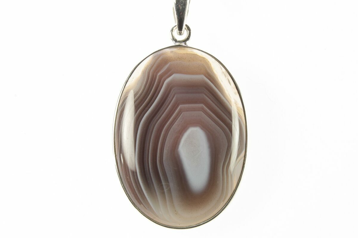 1.35" Botswana Agate Pendant (Necklace) - 925 Sterling Silver