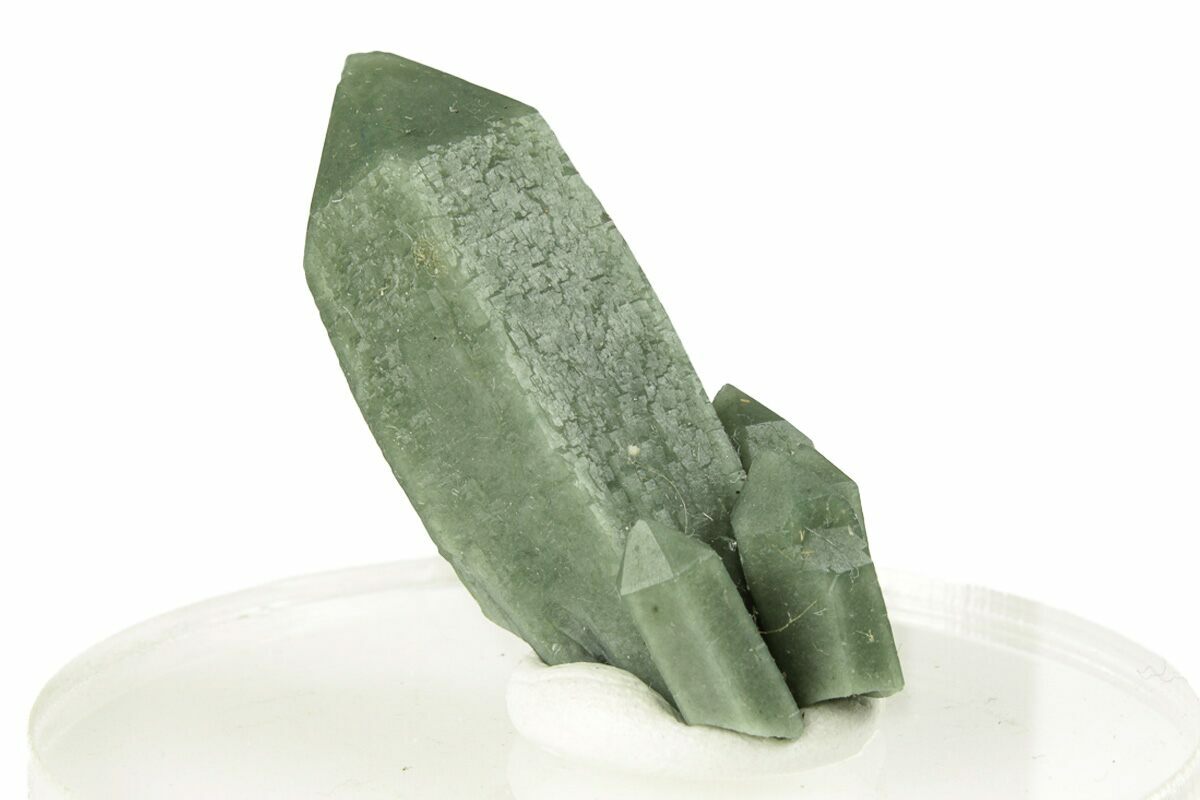 This is a unique green quartz crystal cluster collected from the Huanggang Mines of Inner Mongolia. The green color of the quartz can be attributed to hedenbergite inclusions.