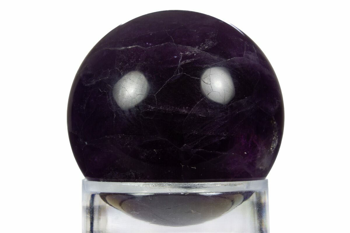 This is a beautiful, 1.4" wide polished sphere made out of green and purple fluorite, mined in China. The quality of the polishing is excellent. Under short wave UV light, the crystals exhibit a blue fluorescence. Comes with the pictured display stand.
