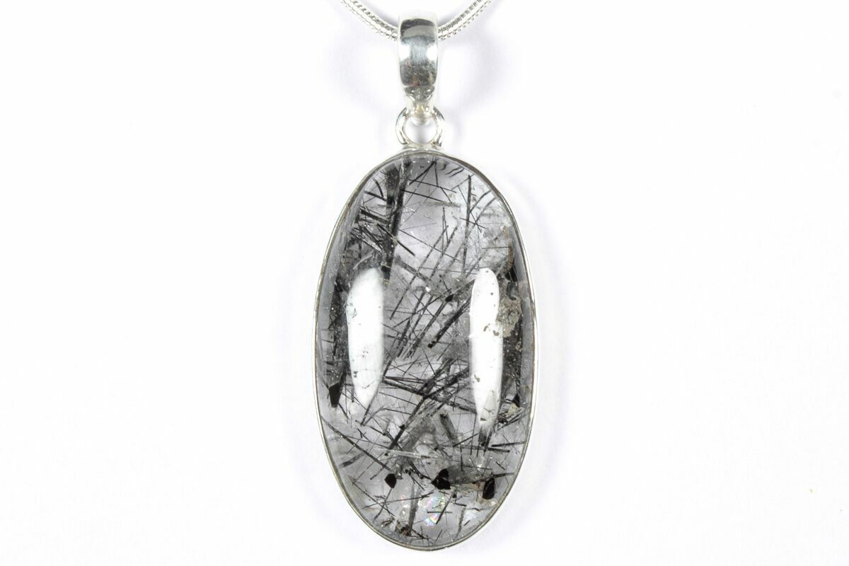 1.4" Glassy Tourmalinated Quartz Pendant - 925 Sterling Silver