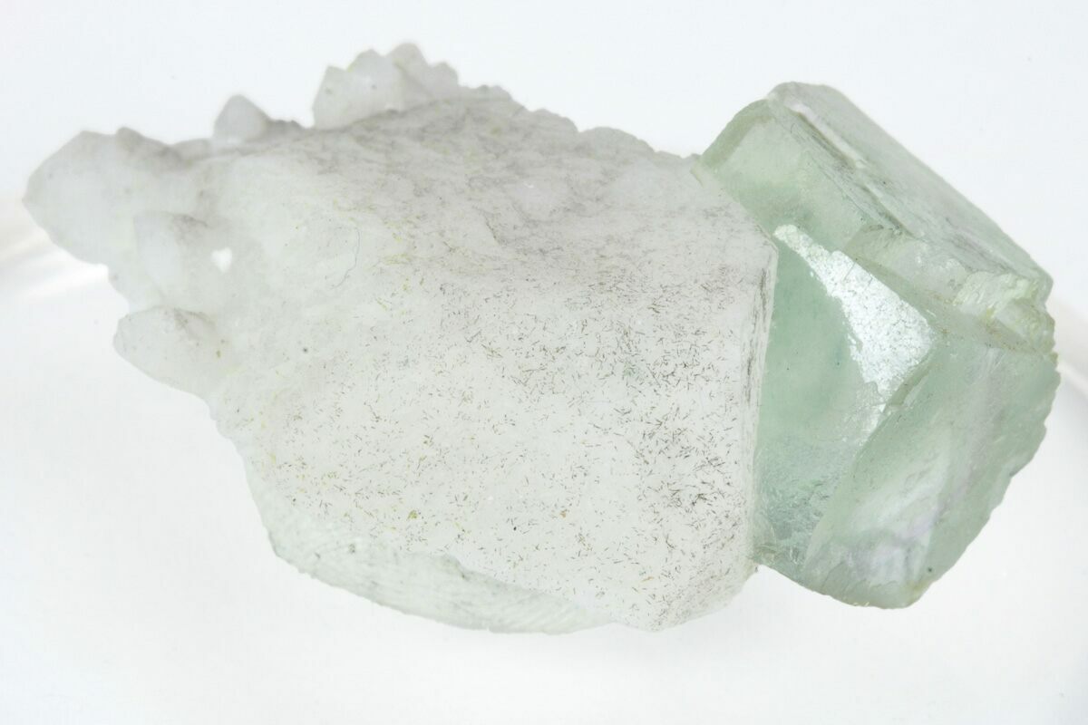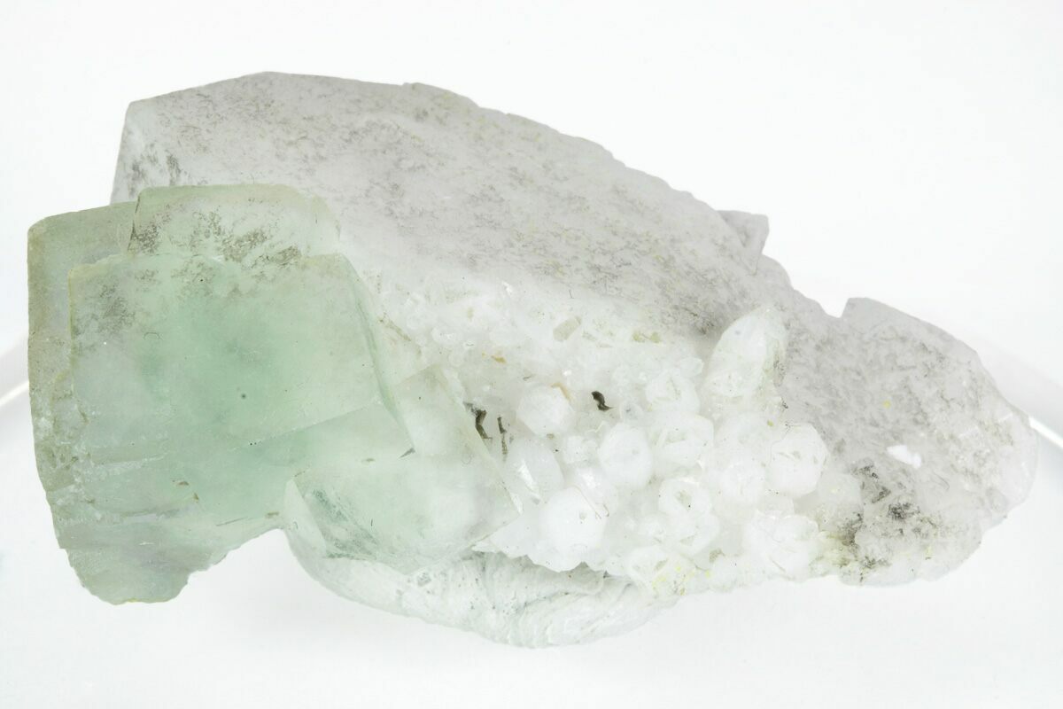 1.4" Green, Cubic Fluorite Crystals on Quartz - Inner Mongolia