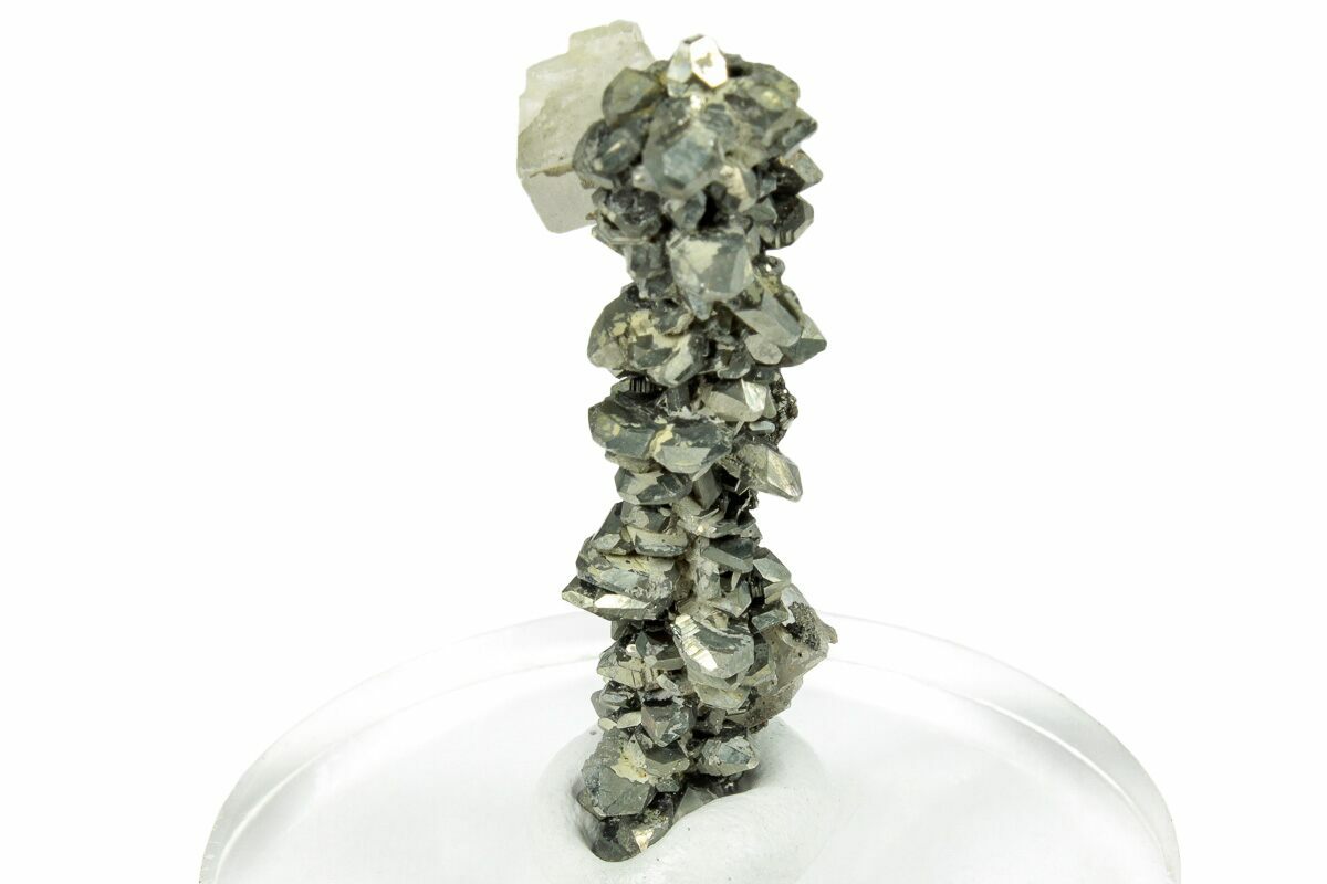 This is a beautiful 1.4" marcasite crystal stalactite with a barite crystal, collected from the Linwood Mine in Buffalo, Iowa. This specimen has been mounted with mineral tack for museum-quality display.