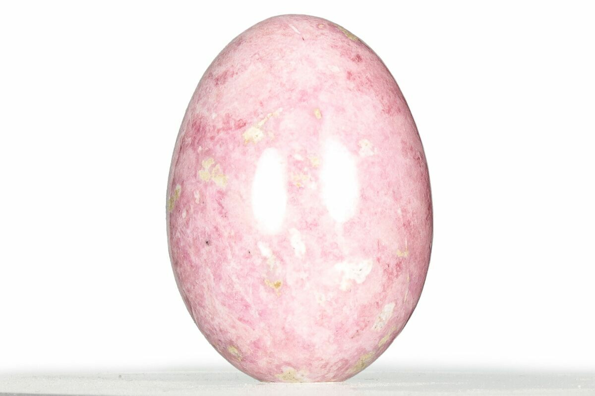 This is a beautiful piece of rhodonite from Colorado that has been polished into the shape of any egg. This specimen measures 1.4 inches tall and its flawless glossy polish really brings out the natural pink color of the stone.