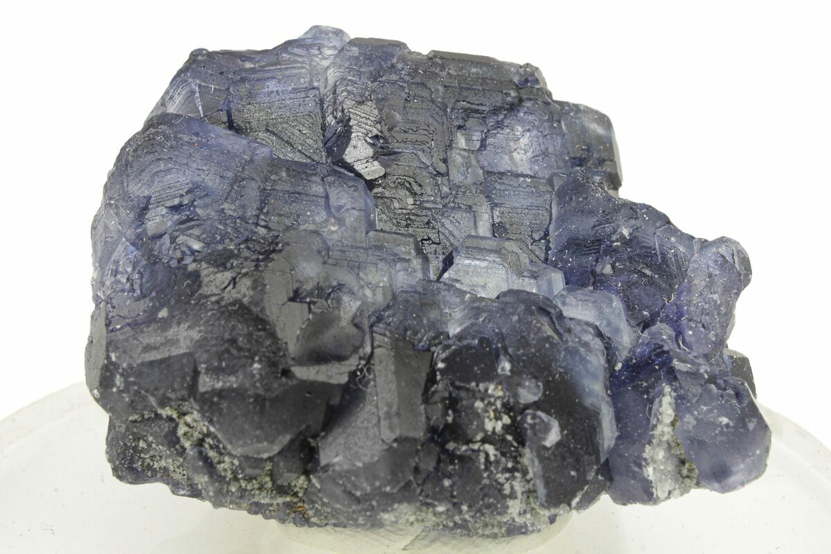 Xia Yang Mine is a mine in central China's Fujian province that produces rich, dark fluorite specimens along with calcite and quartz. The flourite from this locality tends to be blocky in shape with large faces, and can come in a range of colors from vibrant blues to deeper purples and glassy green shades. The deep purple specimens are sometimes called "Tanzanite Fluorites" for the rich, deep blue-purple coloration and the way those colors shift depending on the lighting.