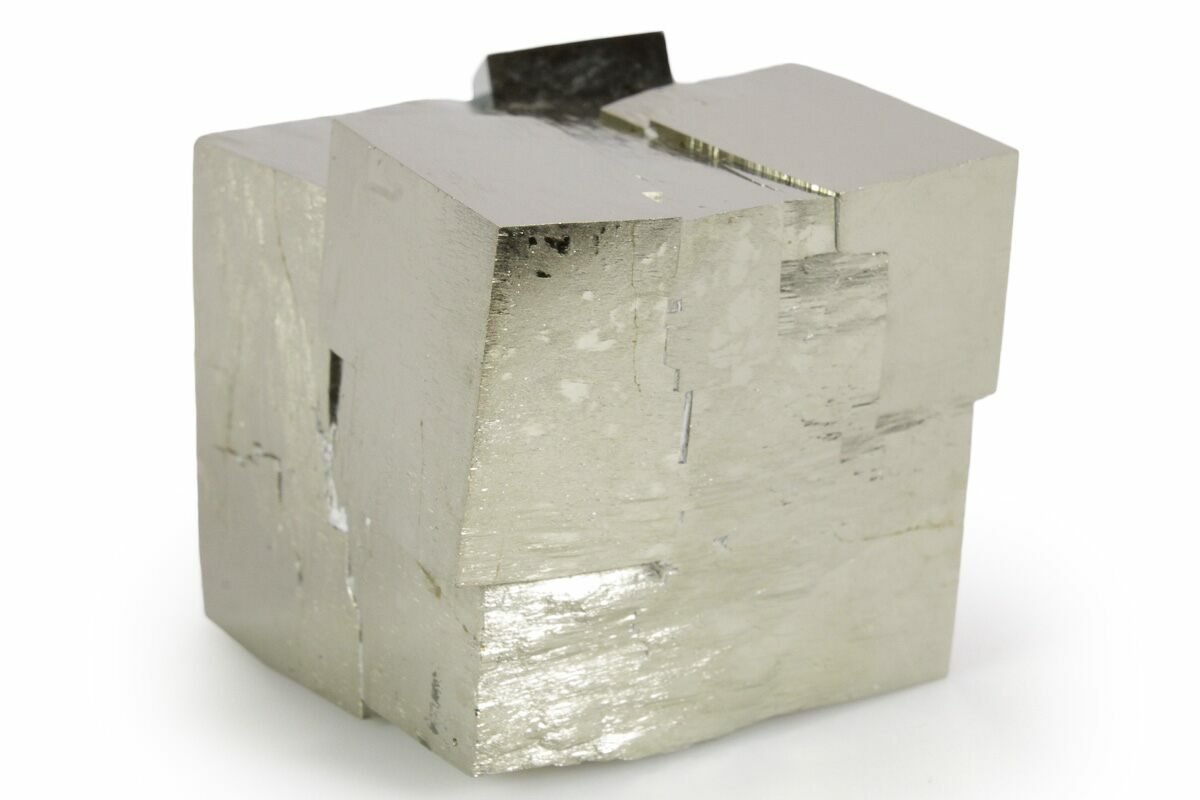 At first glance some people assume that these pyrite cubes are man-made, but the amazing thing is that they are natural! Pyrite from this location is famous for its beautiful shine, near-perfect cubic formation, and sculptural appearance. Because the matrix rock is soft, the cubes often come loose during collection. Care is taken during preparation to stabilize, repair, and make sure everything is remounted in its natural position: no specimens are composites. This means that nearly all of the pyrite cubes still in the rock from this locality have been remounted, and most clusters of multiple cubes have been stabilized.