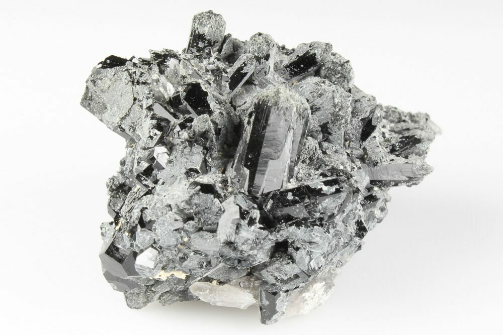 Schorl, also known as "black tourmaline" or "black schorl", is a black form of tourmaline that often occurs as lustrous prismatic crystals. The crystals can be stubby or elongated and typically feature lengthwise striations. Many schorl crystals have flattened pyramidal terminations. They can also form in radiating, columnar, and stalactitic aggregations, as well as small, needle-like inclusions within quartz (tourmalinated quartz) and in massive form.