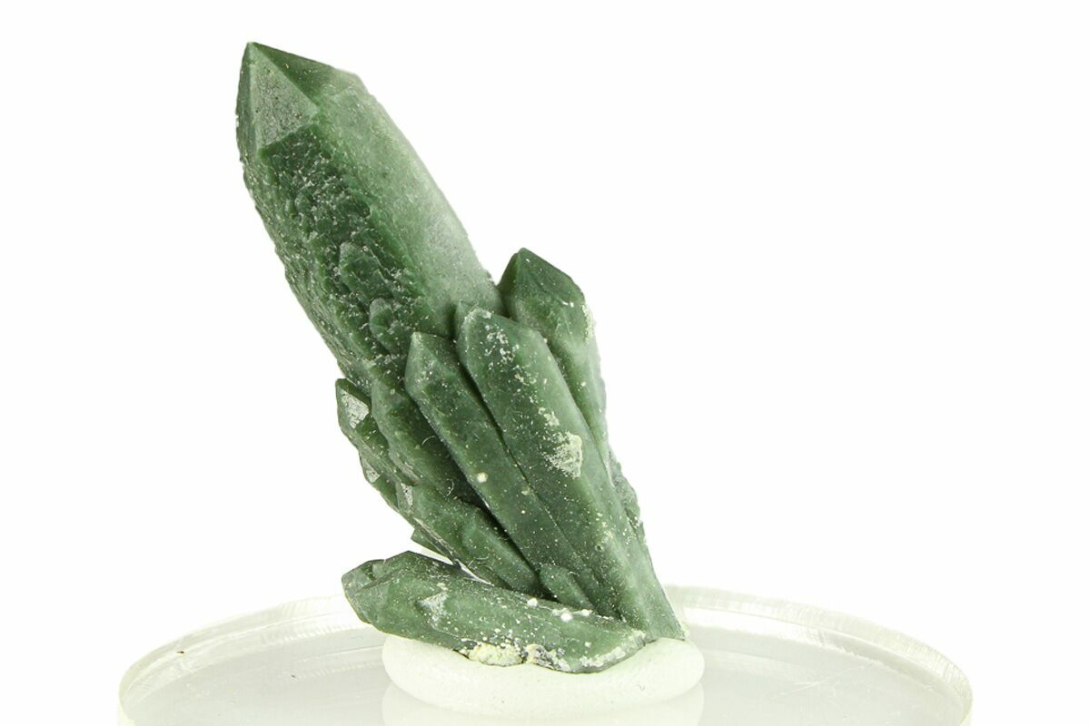 This is a unique green quartz crystal cluster collected from the Huanggang Mines of Inner Mongolia. The green color of the quartz can be attributed to hedenbergite inclusions.