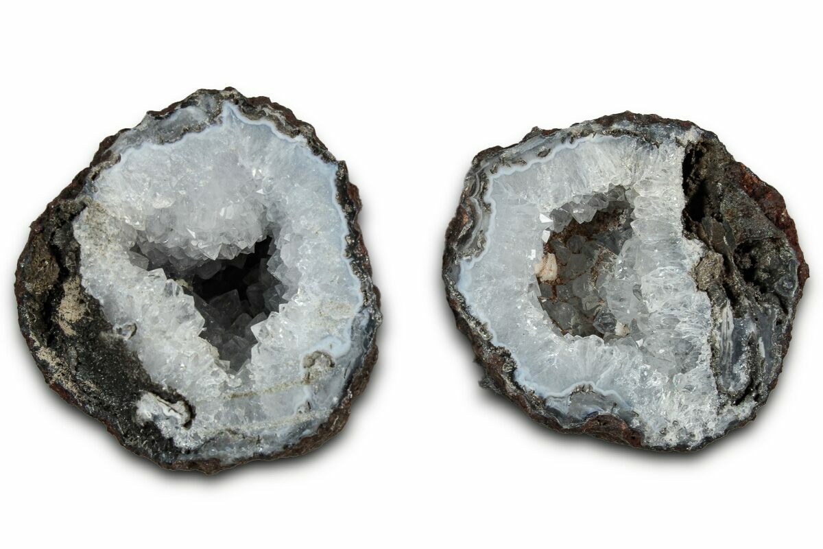 This is a beautiful nodule of banded agate collected from Chihuahua, Mexico. The nodule was carefully removed from the host rock and has been cut in half and polished to a glossy finish. The specimen bears beautiful banding and a gorgeous quartz crystal encrusted pocket at its center. The largest half measures 1.45" wide and both halves of the nodule are included.