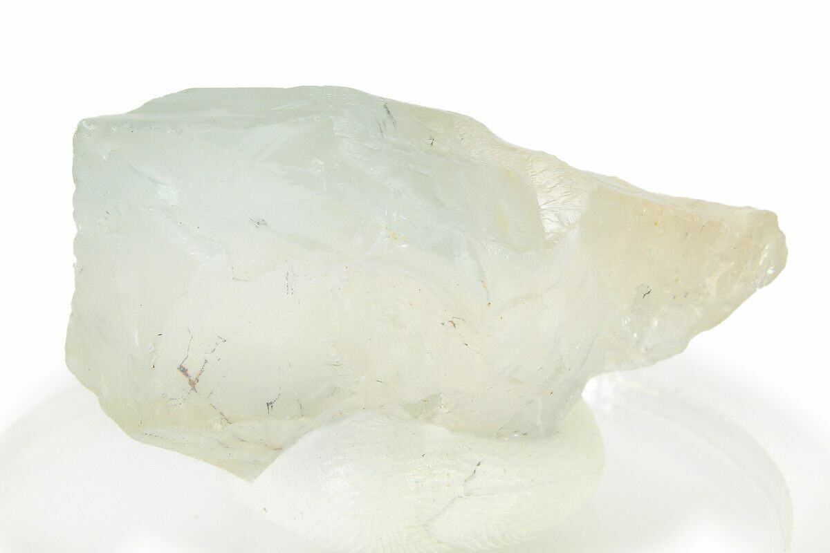 This is a beautiful polychromatic topaz crystal collected from the Volyn deposit in Zhytomyr Oblast, Ukraine. The topaz crystal has wonderful clarity and faint blue and brown coloration. It has been mounted to an acrylic display base with mineral tack.