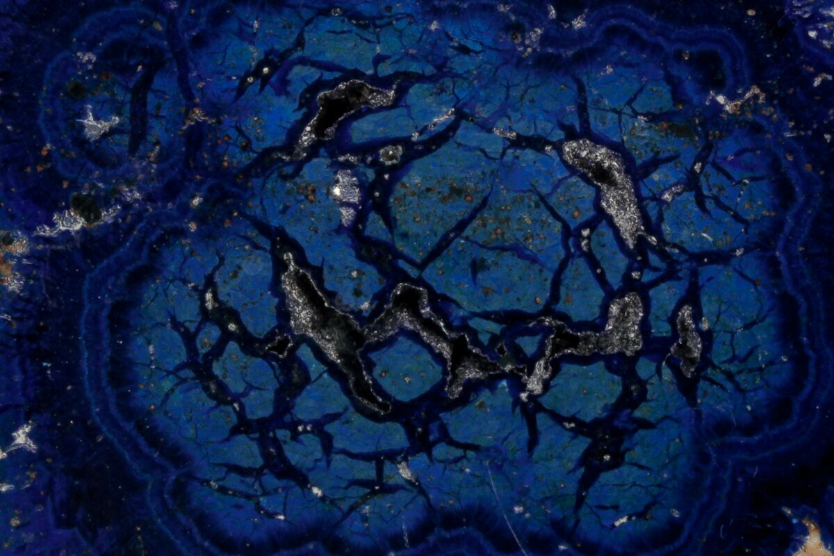 This is an incredibly vivid, blue azurite nodule slice that has been cut flat on both sides and polished to a glossy finish on one. These vibrant nodules come from Rubtsovsk mine in Altai Krai, Siberia.