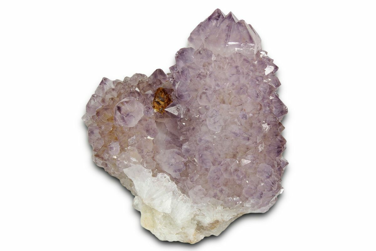 Cactus quartz, often also referred to as spirit quartz, is a variety of quartz characterized by second-generation druzy crystals growing on the faces of larger quartz crystals. The small second-generation crystals point away from the prism and their orientation is not related to the crystallographic orientation of the central crystal. Cactus quartz is currently only known from the Magaliesberg Mountains region of South Africa, and comes in a variety of shades ranging from white to deep purple to orange colorations. The deep purple amethyst points are the rarest and most coveted by collectors.