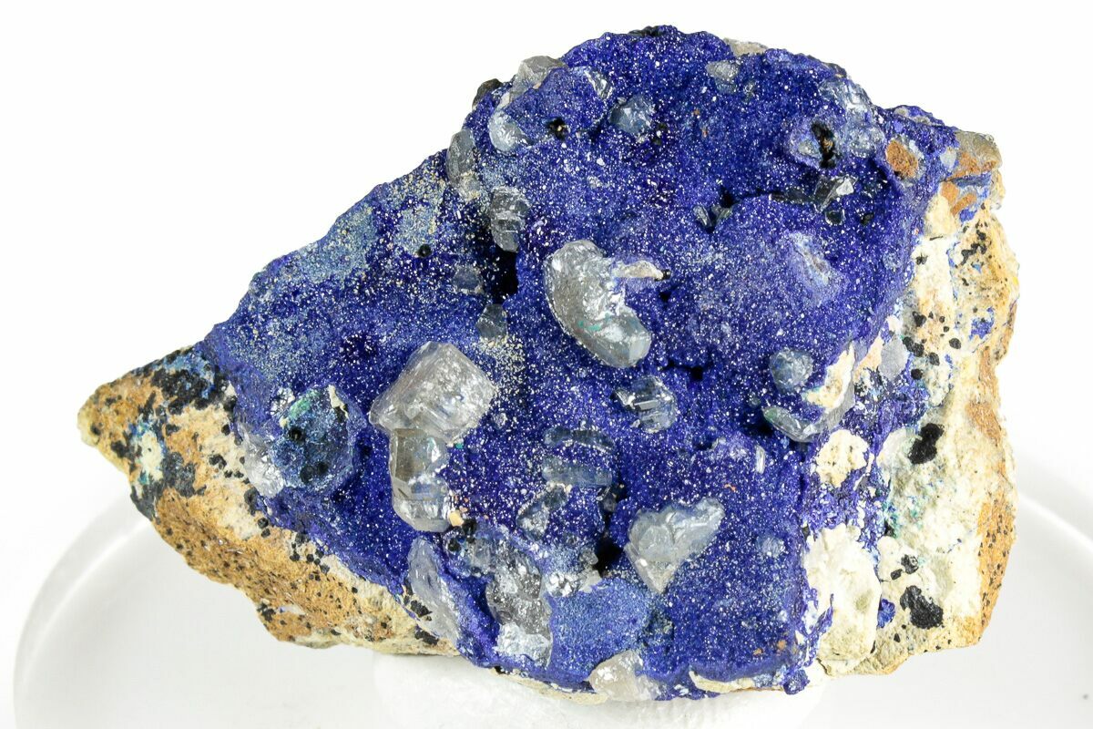 Azurite is a copper carbonate hydroxide mineral best known for its beautiful and vibrant blue appearance. Azurite typically forms in nodular formations with other colorful, copper-rich minerals. It is a secondary mineral that precipitated in pores, crevices, and caverns from water with high concentrations of carbon dioxide.