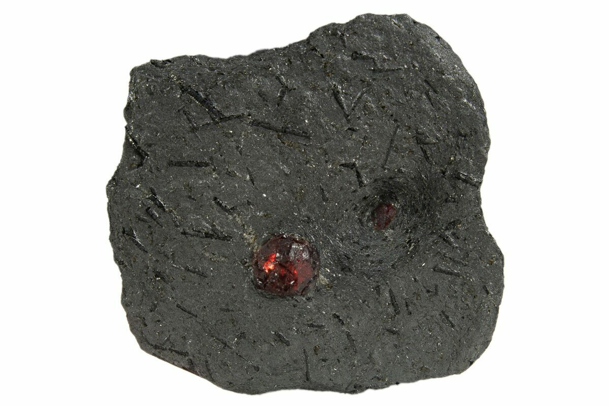 1.5" Plate of Two Red Embers Garnets in Graphite - Massachusetts