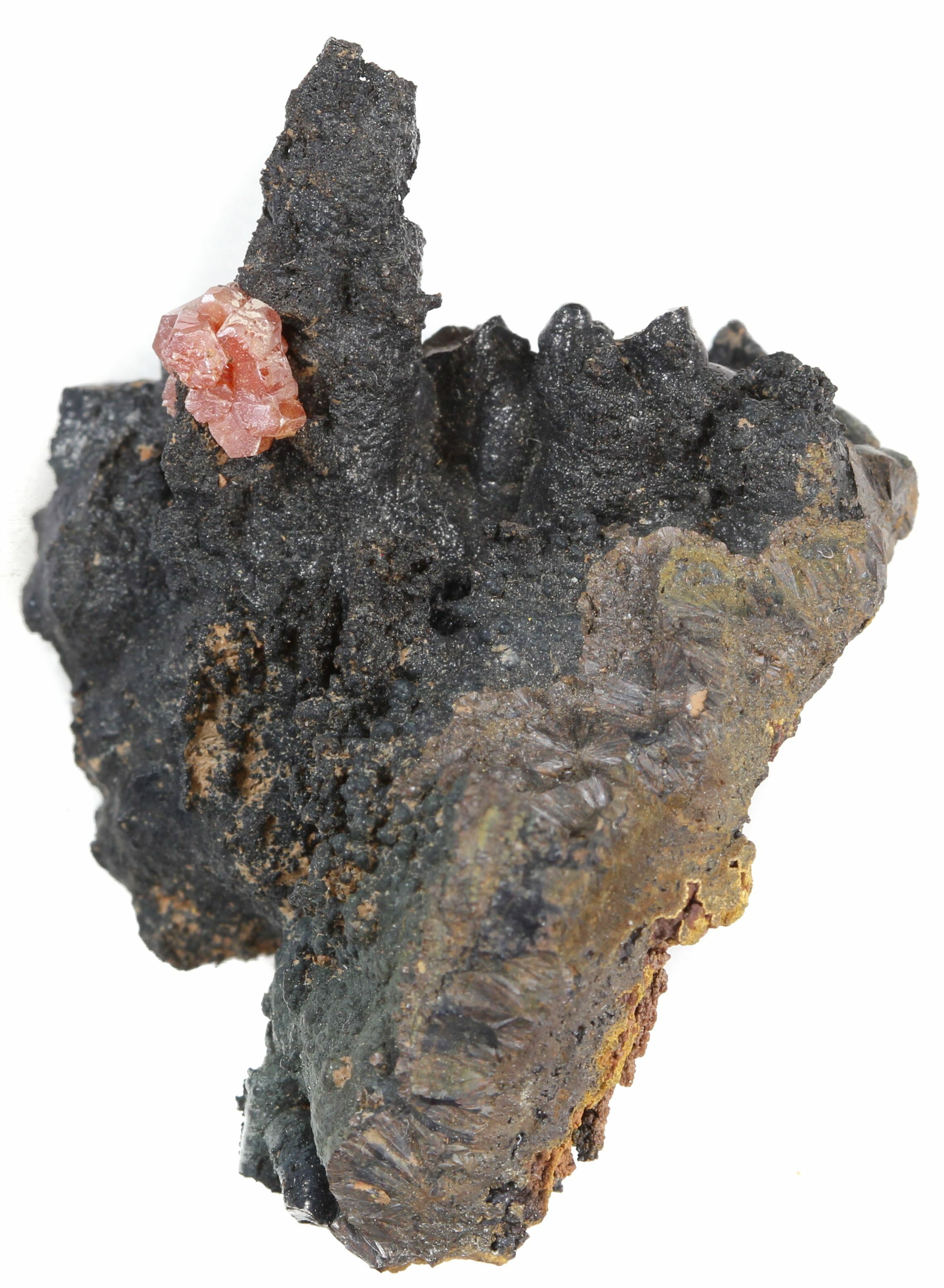 The iron rich matrix will form with stalactite-like protrusions, often feeling rough and sometimes brittle. In manganese oxide rich specimens, a rounded/botryoidal appearance is likely to be found.