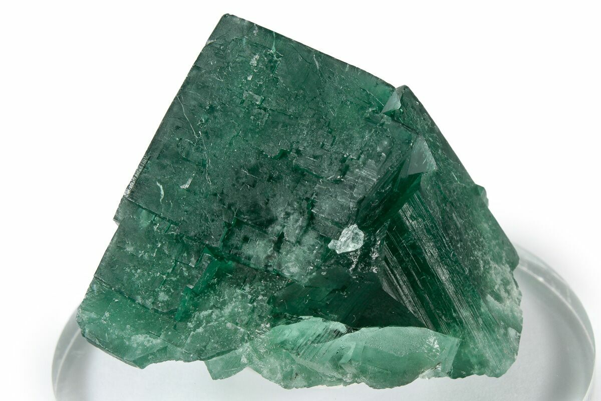 This is a gorgeous, 1.55" wide cubic fluorite twin cluster from the "Greedy Hog Pocket" (intersection of River Catcher Vein and Greenbank Vein) at the Diana Maria Mine in England. This particular kind of fluorite is unique in that it will actually fluoresce a beautiful purple-blue color in just natural light alone! Under short and long wave UV, these crystals fluoresce a vibrant purple color.