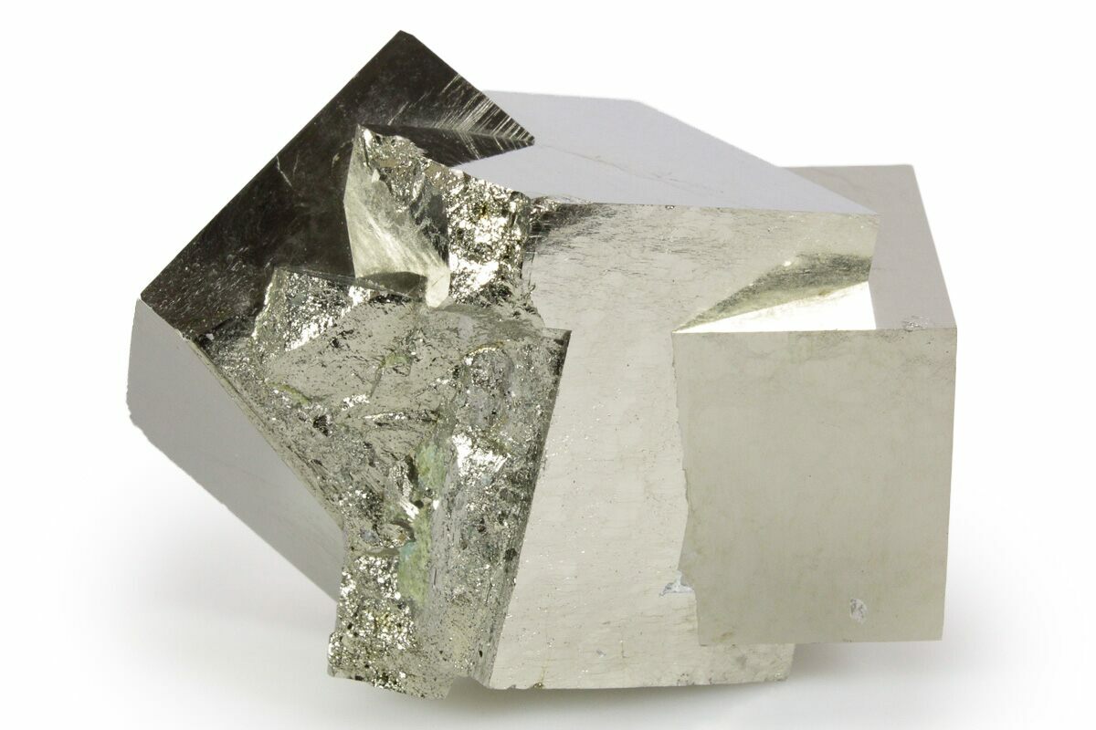 At first glance some people assume that these pyrite cubes are man-made, but the amazing thing is that they are natural! Pyrite from this location is famous for its beautiful shine, near-perfect cubic formation, and sculptural appearance. Because the matrix rock is soft, the cubes often come loose during collection. Care is taken during preparation to stabilize, repair, and make sure everything is remounted in its natural position: no specimens are composites. This means that nearly all of the pyrite cubes still in the rock from this locality have been remounted, and most clusters of multiple cubes have been stabilized.
