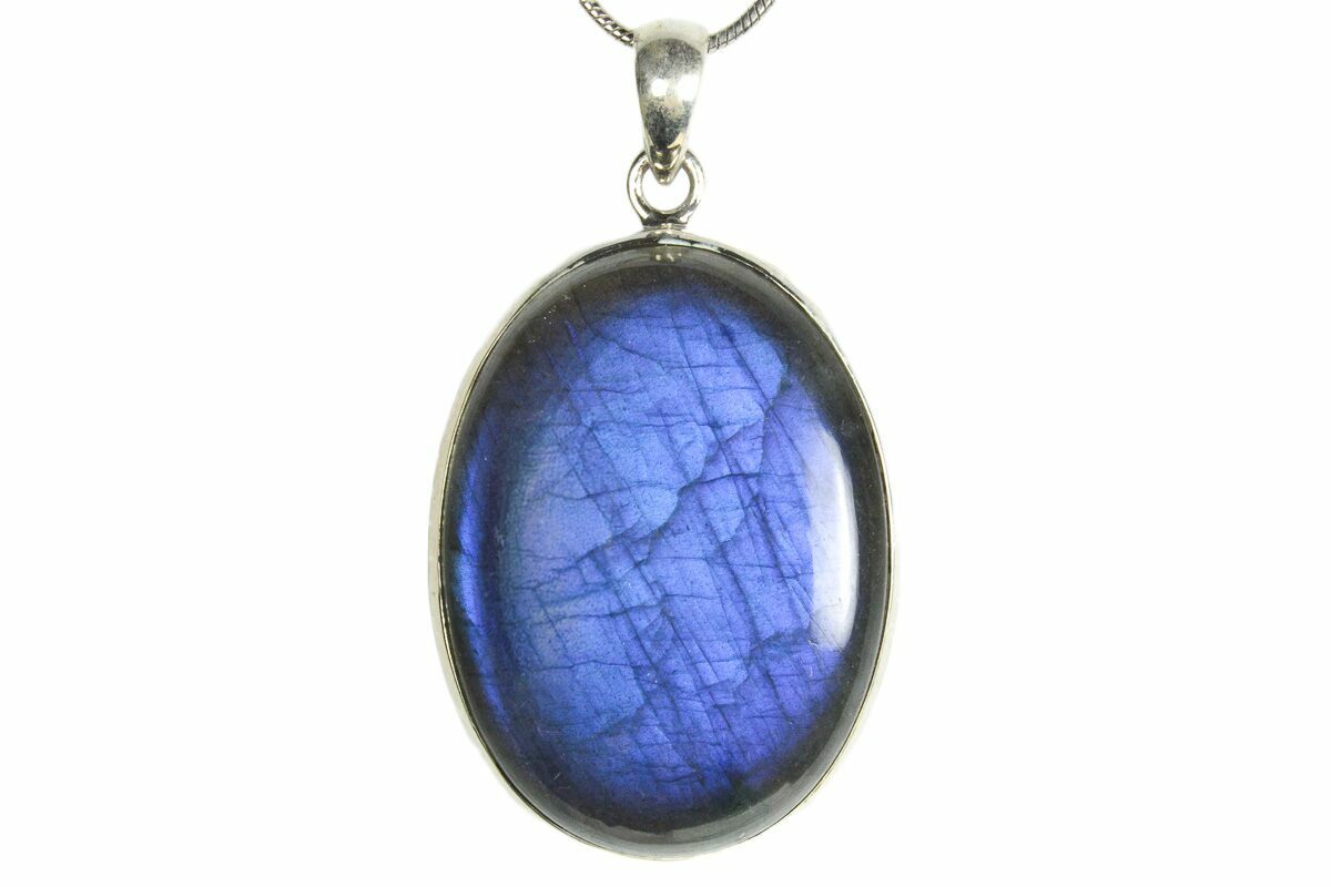 1.6" Brilliant Blue Labradorite Pendant with Chain