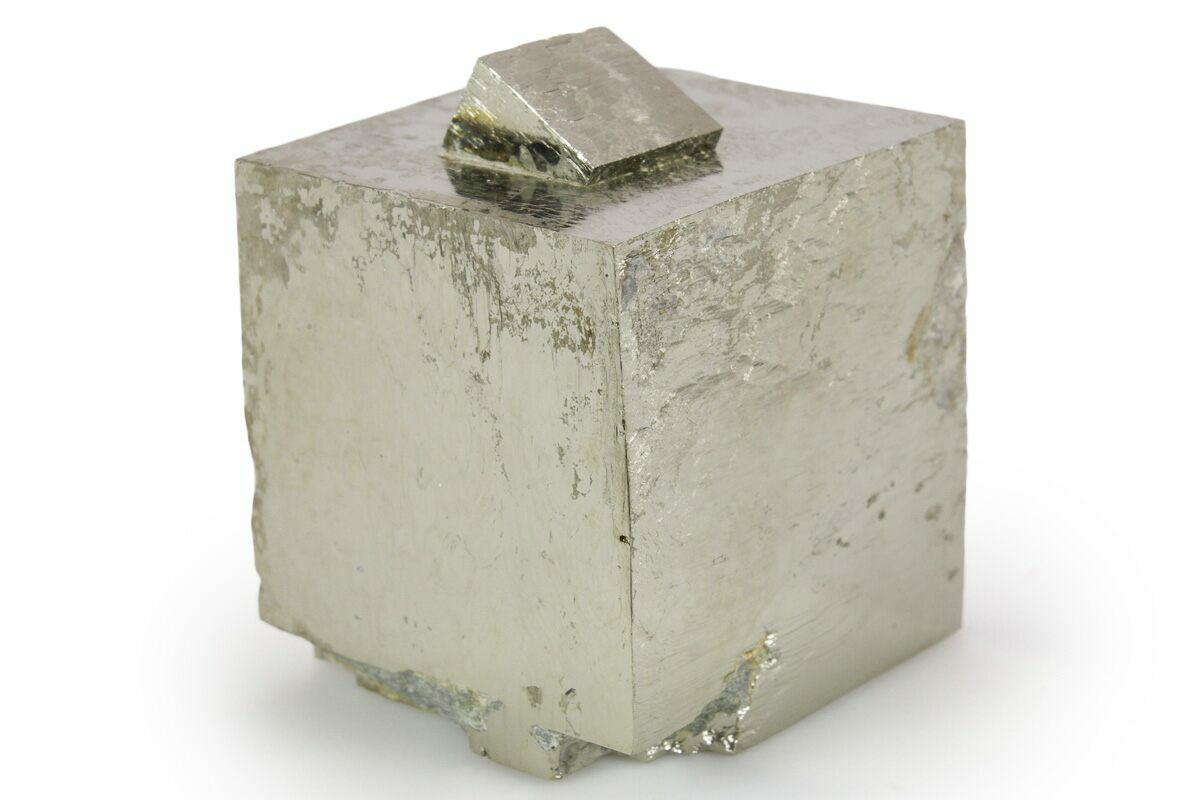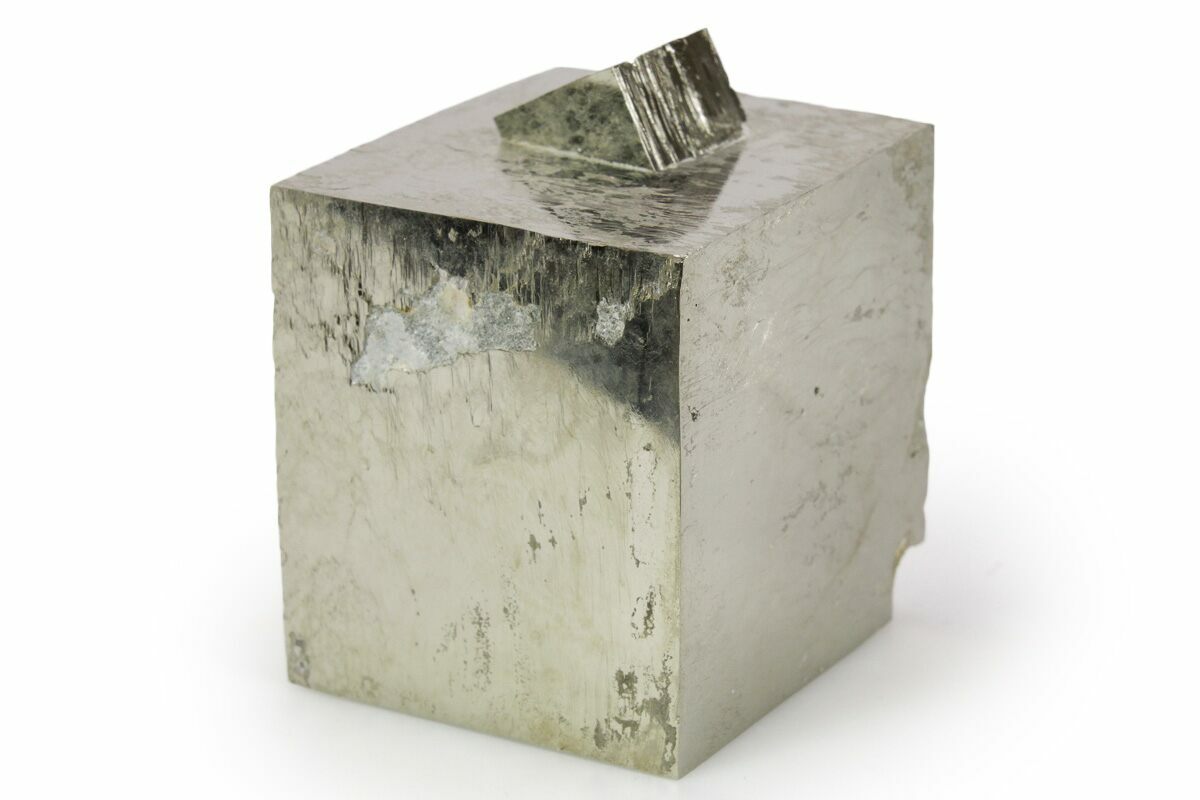 At first glance some people assume that these pyrite cubes are man-made, but the amazing thing is that they are natural! Pyrite from this location is famous for its beautiful shine, near-perfect cubic formation, and sculptural appearance. Because the matrix rock is soft, the cubes often come loose during collection. Care is taken during preparation to stabilize, repair, and make sure everything is remounted in its natural position: no specimens are composites. This means that nearly all of the pyrite cubes still in the rock from this locality have been remounted, and most clusters of multiple cubes have been stabilized.