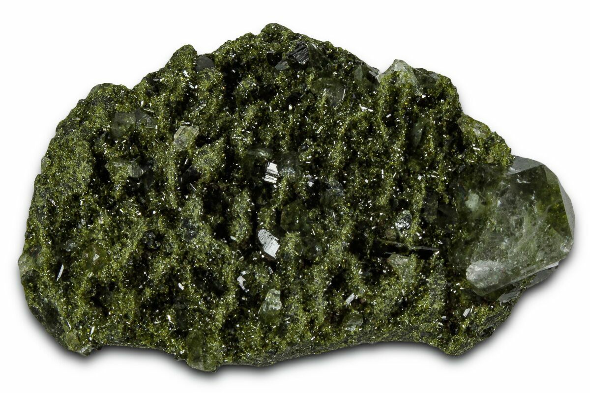 1.6" Sparkling Dark Green Epidote Crystals with Quartz - Turkey