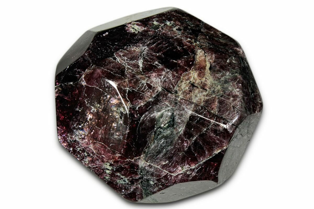 This is a 1.65" wide, faceted and polished Rhodolite garnet from Mozambique, Africa.