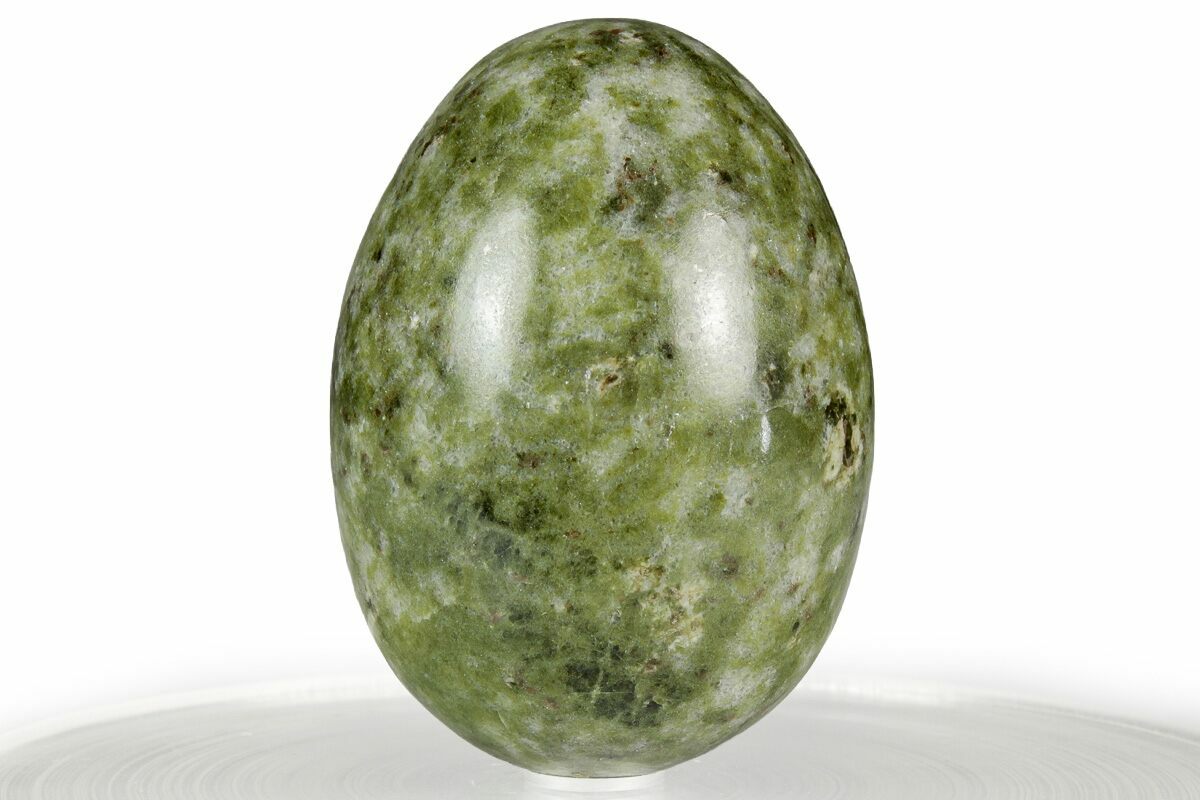 This is a beautiful 1.65" tall polished egg made from a natural massive formation of epidote known by the name of "snowflake epidote", collected in South Africa. Exceptional polish quality on this egg.