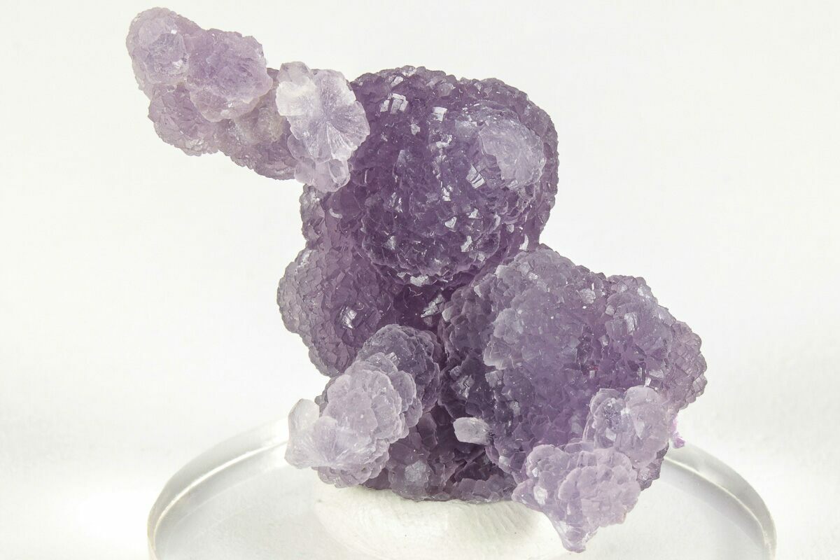 These formations were created over millions of years as silica-rich fluids filled voids and crevices in volcanic rock. As the fluids cooled, they precipitated tiny quartz crystals, which slowly grew in layers to create the nodules we see today. Its mineral composition and appearance set it apart from traditional agates, and it would be most technically correct to call it a "amethystine botryoidal chalcedony". As a collectible mineral, it’s relatively durable but should be kept out of direct sunlight to prevent color fading.