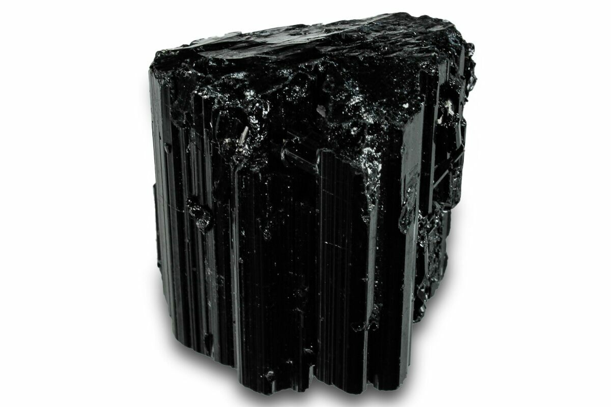 Schorl, also known as "black tourmaline" or "black schorl", is a black form of tourmaline that often occurs as lustrous prismatic crystals. The crystals can be stubby or elongated and typically feature lengthwise striations. Many schorl crystals have flattened pyramidal terminations. They can also form in radiating, columnar, and stalactitic aggregations, as well as small, needle-like inclusions within quartz (tourmalinated quartz) and in massive form.