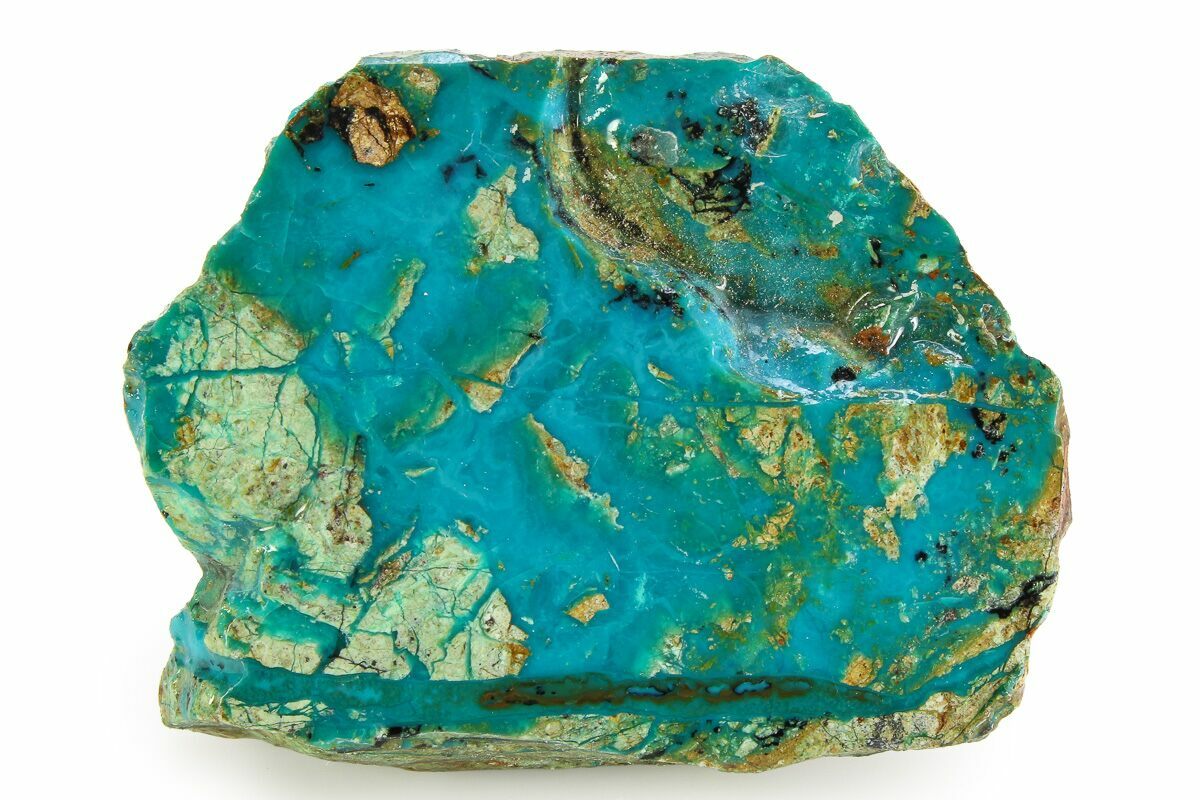 This is an incredibly vibrant, 1.65" wide section of "Chilean blue opal", also known as "Atacama blue opal", collected from the Atacama region of Chile. One side has been polished to a glossy finish on and sealed to highlight the incredibly vivid blue coloration of this natural stone.