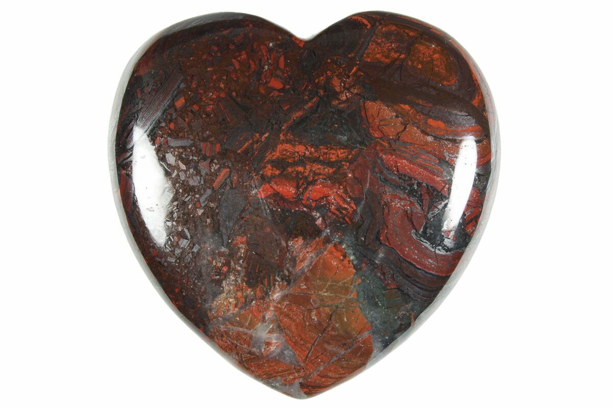 This stunning polished Tiger Iron heart from Western Australia measures 2 inches across and features a smooth, glossy finish that beautifully highlights its natural banding and rich colors.
