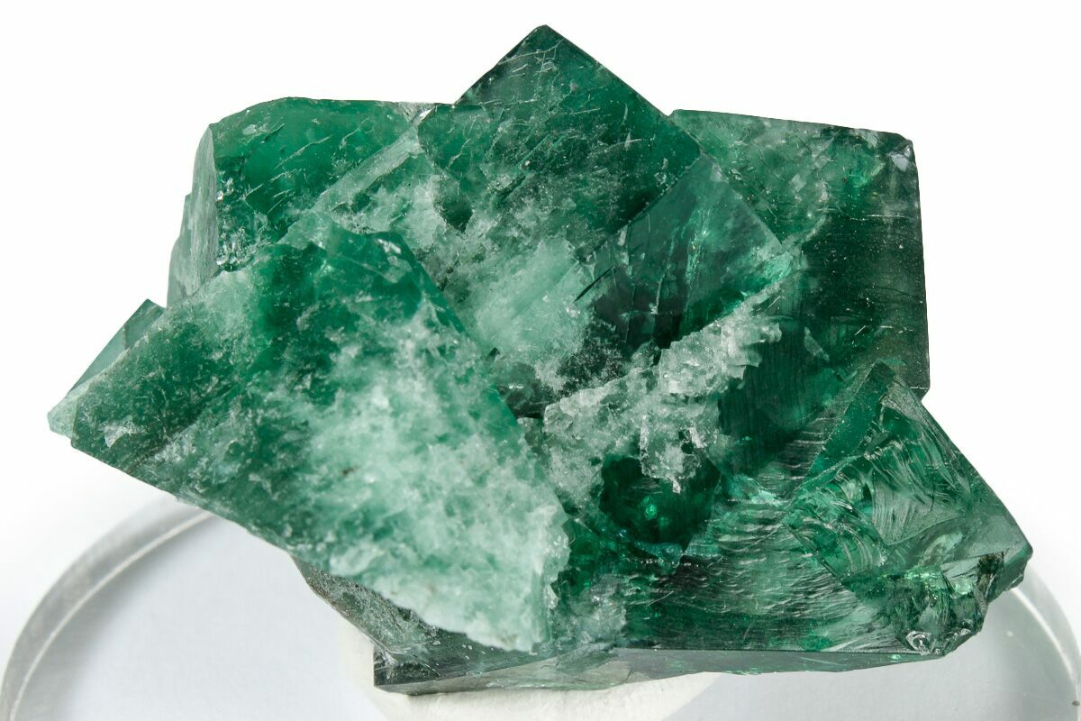 This is a gorgeous, 1.7" wide cubic fluorite twin cluster from the "Greedy Hog Pocket" (intersection of River Catcher Vein and Greenbank Vein) at the Diana Maria Mine in England. This particular kind of fluorite is unique in that it will actually fluoresce a beautiful purple-blue color in just natural light alone! Under short and long wave UV, these crystals fluoresce a vibrant purple color.