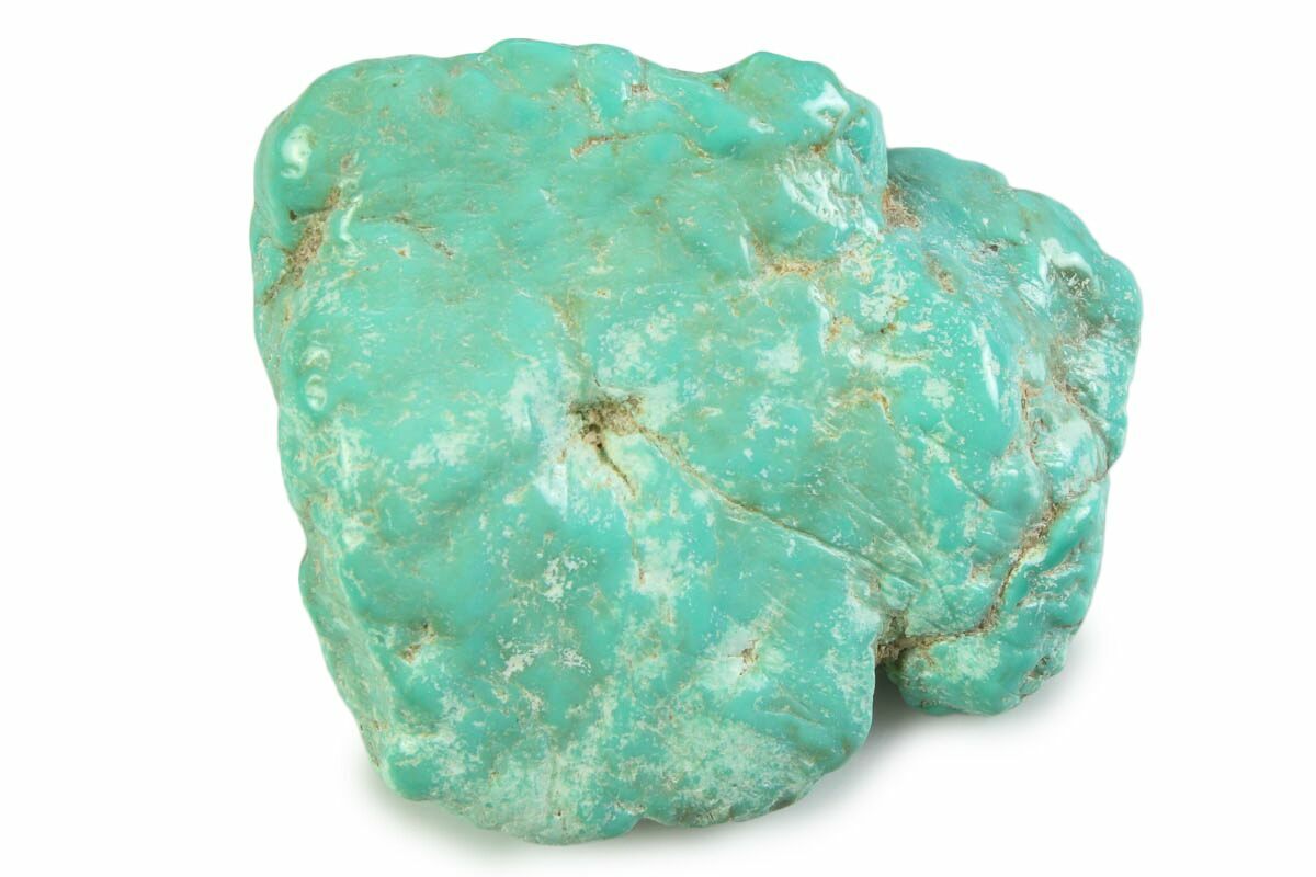 Turquoise is a prized gemstone known for its captivating shades of blue to green, formed through the interaction of copper, aluminum, and phosphate in arid, mineral-rich environments. Throughout history, it has been valued by many cultures for its beauty and rarity. Chilean turquoise, though less widely known than material from regions like the American Southwest or Iran, offers its own distinctive appeal. It is primarily mined in northern Chile, particularly in the Atacama Desert near cities like Copiapó and Ovalle, where copper mining is abundant. This turquoise often exhibits vivid blue to blue-green tones, frequently accented by striking veins of brown, black, or golden matrix. Its bold coloration and earthy character make Chilean turquoise a unique and sought-after variety among collectors and jewelry artisans alike.