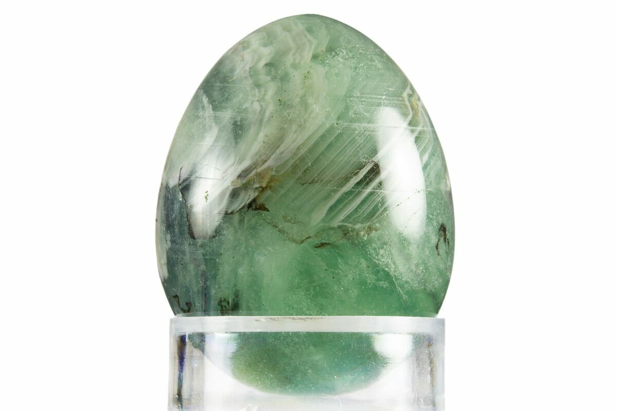 Here we have a piece of fluorite from China which has been hand-polished into the shape of an egg. This unique specimen is 1.7" tall and bears apple-green coloration. It comes with the pictured display stand.
