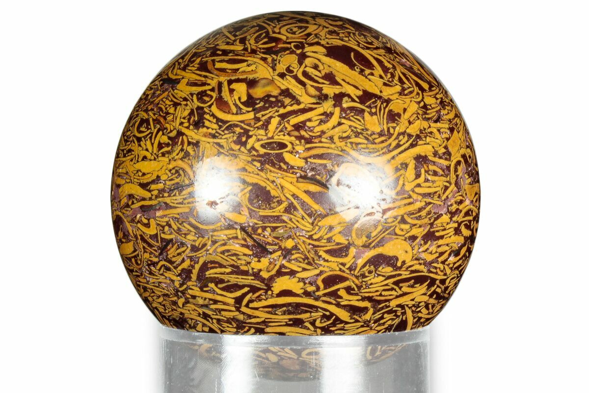 This is a beautiful, 1.7" wide polished sphere made from Miriam (coquina) jasper from the Himalayan Mountains of India. The high-gloss polishing is wonderful and really brings out the intricate details of the shell fossils.