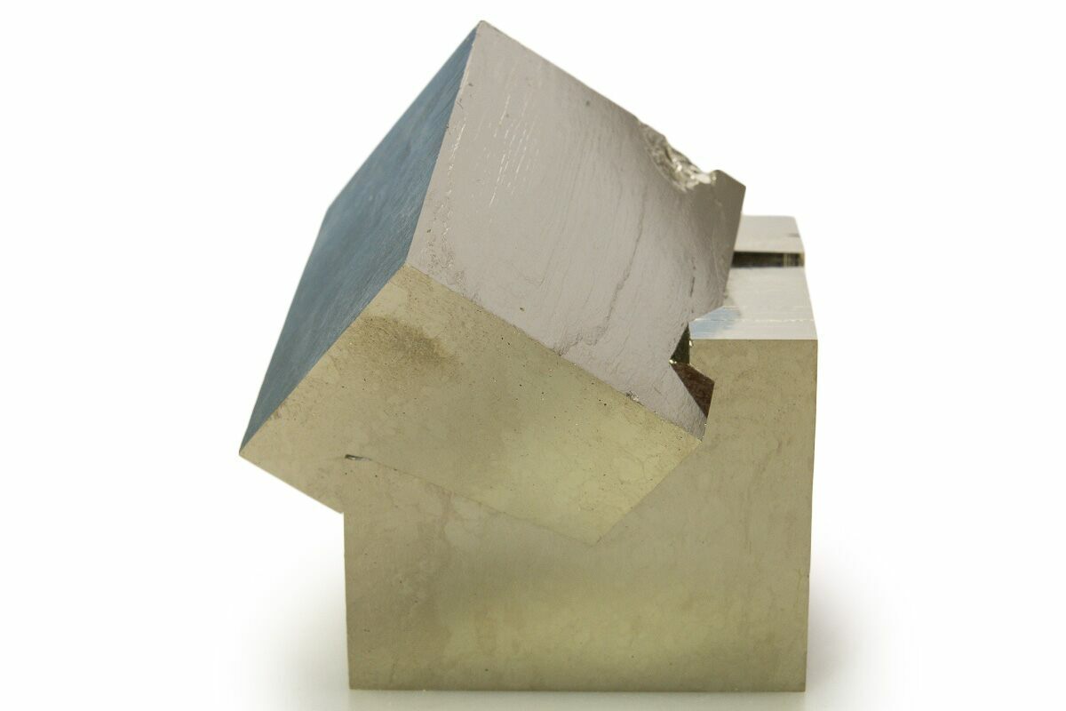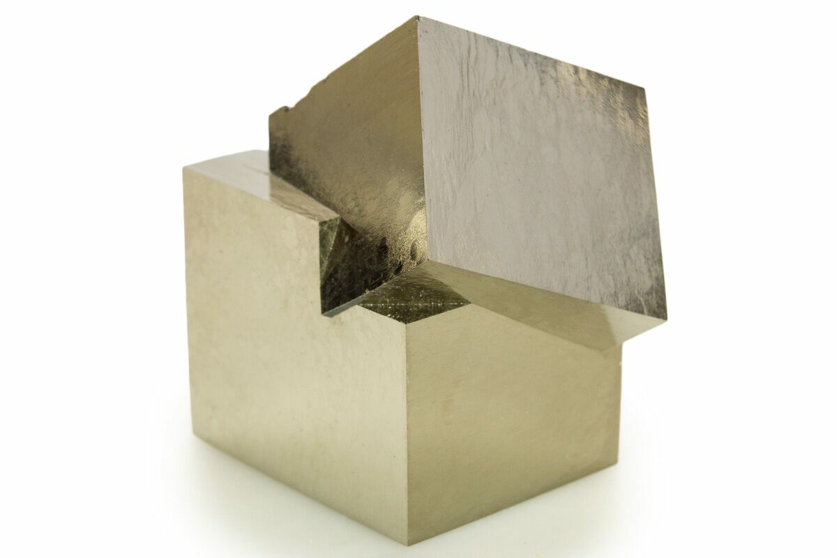 At first glance some people assume that these pyrite cubes are man-made, but the amazing thing is that they are natural! Pyrite from this location is famous for its beautiful shine, near-perfect cubic formation, and sculptural appearance. Because the matrix rock is soft, the cubes often come loose during collection. Care is taken during preparation to stabilize, repair, and make sure everything is remounted in its natural position: no specimens are composites. This means that nearly all of the pyrite cubes still in the rock from this locality have been remounted, and most clusters of multiple cubes have been stabilized.
