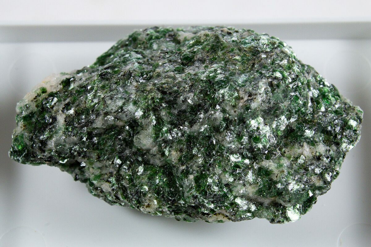 This is a 1.7" wide section of very sparkly, green fuchsite crystals in quartz, collected from Mt. Gaskabeaivarri in far Northern Norway. It is really spectacular looking material.
