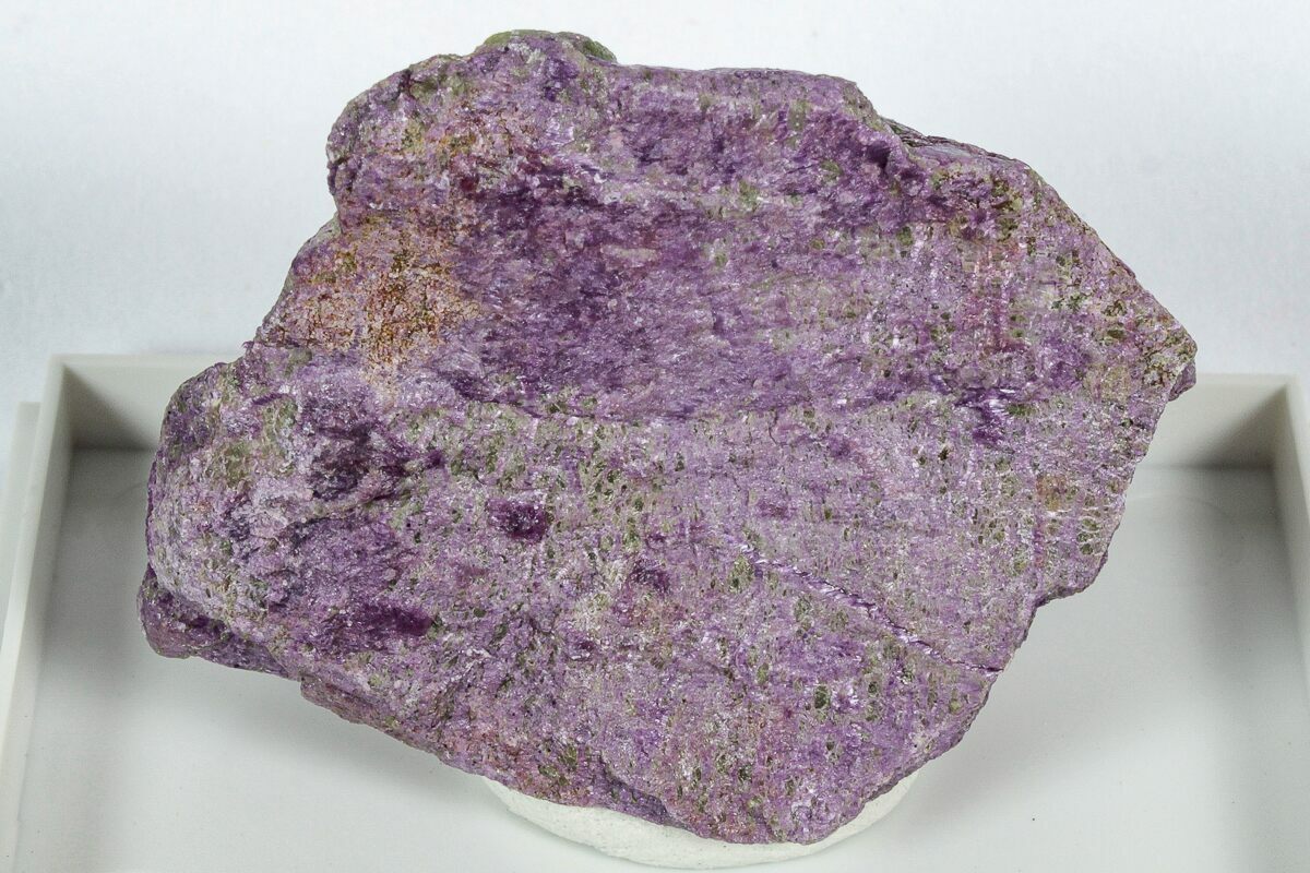 This is a natural, 1.7" wide specimen of rough, vibrant, magenta-colored stichtite collected near the village of Kaapschehoop (or Kaapsehoop) in Mpumalanga, South Africa. It is accompanied by an acrylic display case and mineral tack.