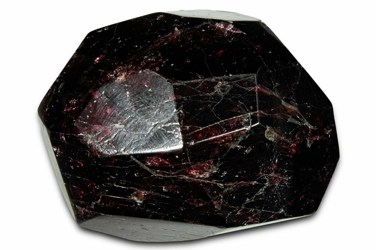 This is a 1.75" wide, faceted and polished Rhodolite garnet from Mozambique, Africa.