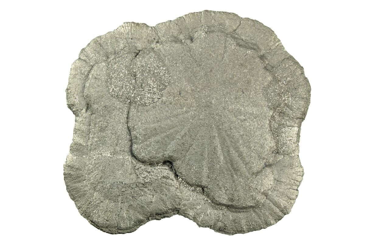 People used to believe that pyrite suns were fossils that had undergone pyrite replacement. The current consensus is that they are simply formed due to the enormous pressure compacting the slate, and causing pyrite to grow laterally in a radiating manner.
