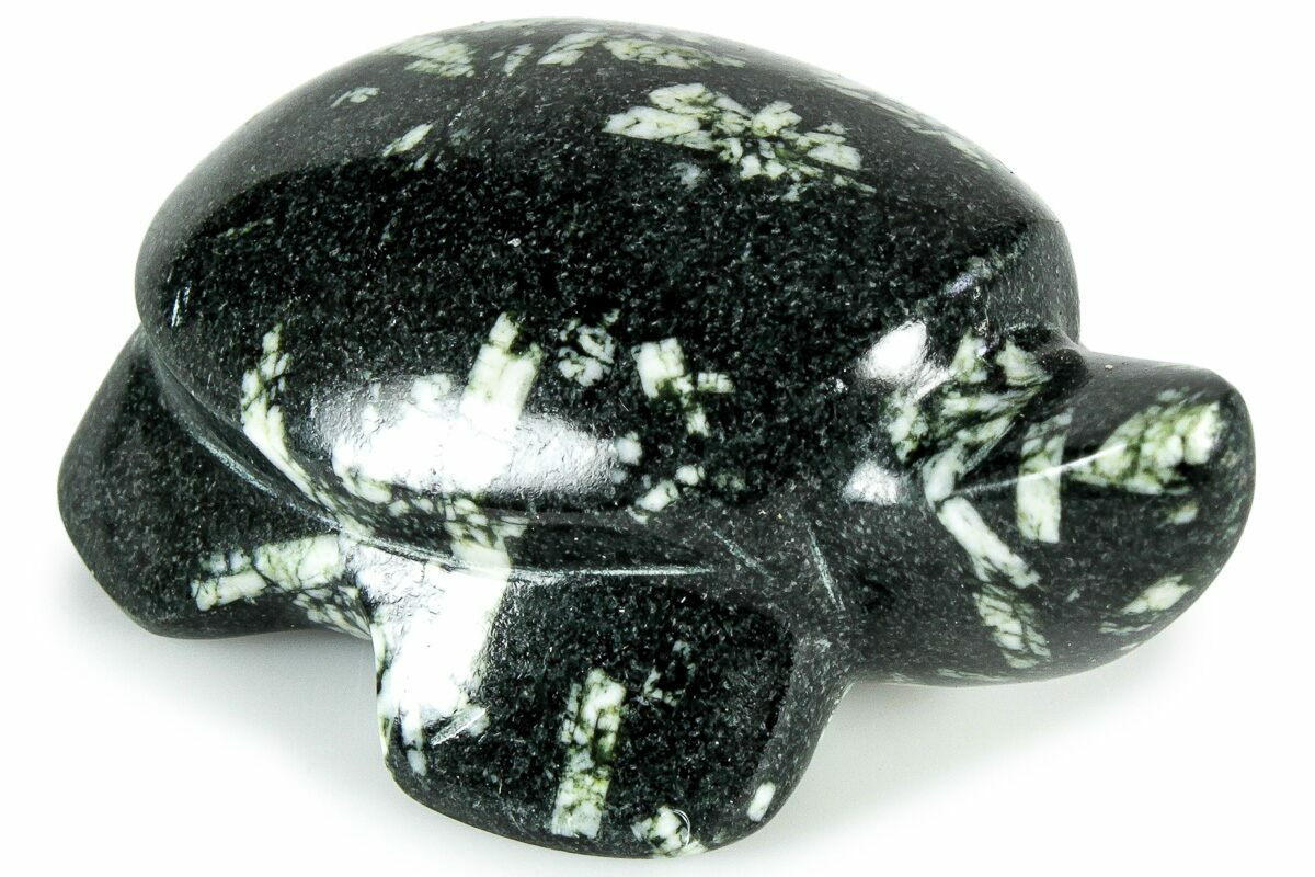 This is a beautiful polished turtle sculpture carved from a piece of Chinese writing rock. This little guy measures 1.8 inches long and has been polished to a glossy finish.