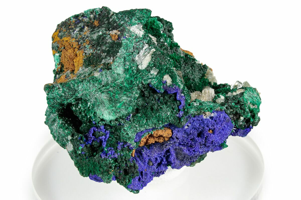 1.8" Cerussite and Green Malachite on Sparkling Azurite - Congo