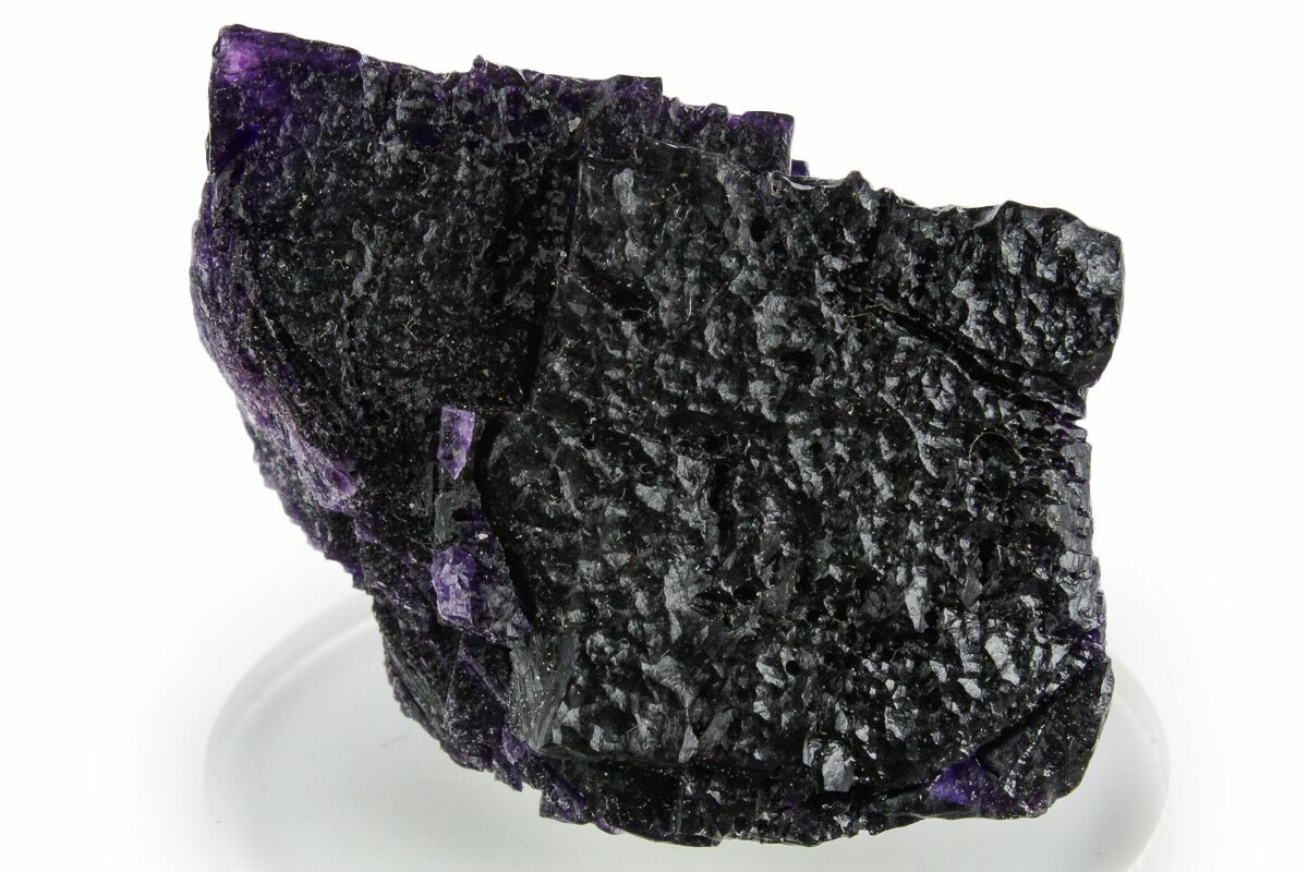 This is a dark purple cubic fluorite crystal cluster collected from the Cave-In-Rock district of Harden County, Illinois. It has been mounted to an acrylic display base with mineral tack.