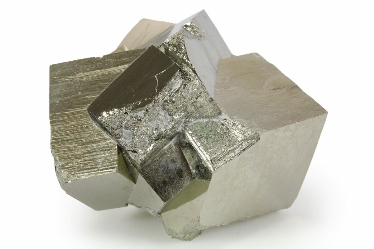 At first glance some people assume that these pyrite cubes are man-made, but the amazing thing is that they are natural! Pyrite from this location is famous for its beautiful shine, near-perfect cubic formation, and sculptural appearance. Because the matrix rock is soft, the cubes often come loose during collection. Care is taken during preparation to stabilize, repair, and make sure everything is remounted in its natural position: no specimens are composites. This means that nearly all of the pyrite cubes still in the rock from this locality have been remounted, and most clusters of multiple cubes have been stabilized.