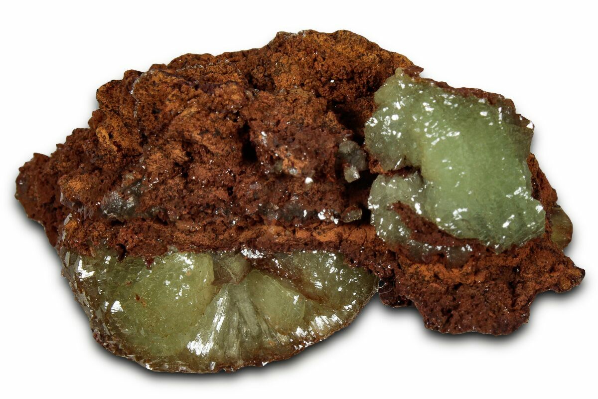 Adamite is a basic zinc arsenate with the base chemical formula of Zn2(AsO4)(OH). When impurities are present in the mineral, the color is altered, explaining the wide variety of colors that adamite displays. Copper and cobalt are some well-known impurities that can give mineral specimens a green (Cu) to pink/red (Co) color. Adamite is typically found imbedded in a limonite matrix, formed as a secondary mineral in oxidation zones of hydrothermal replacement deposits.