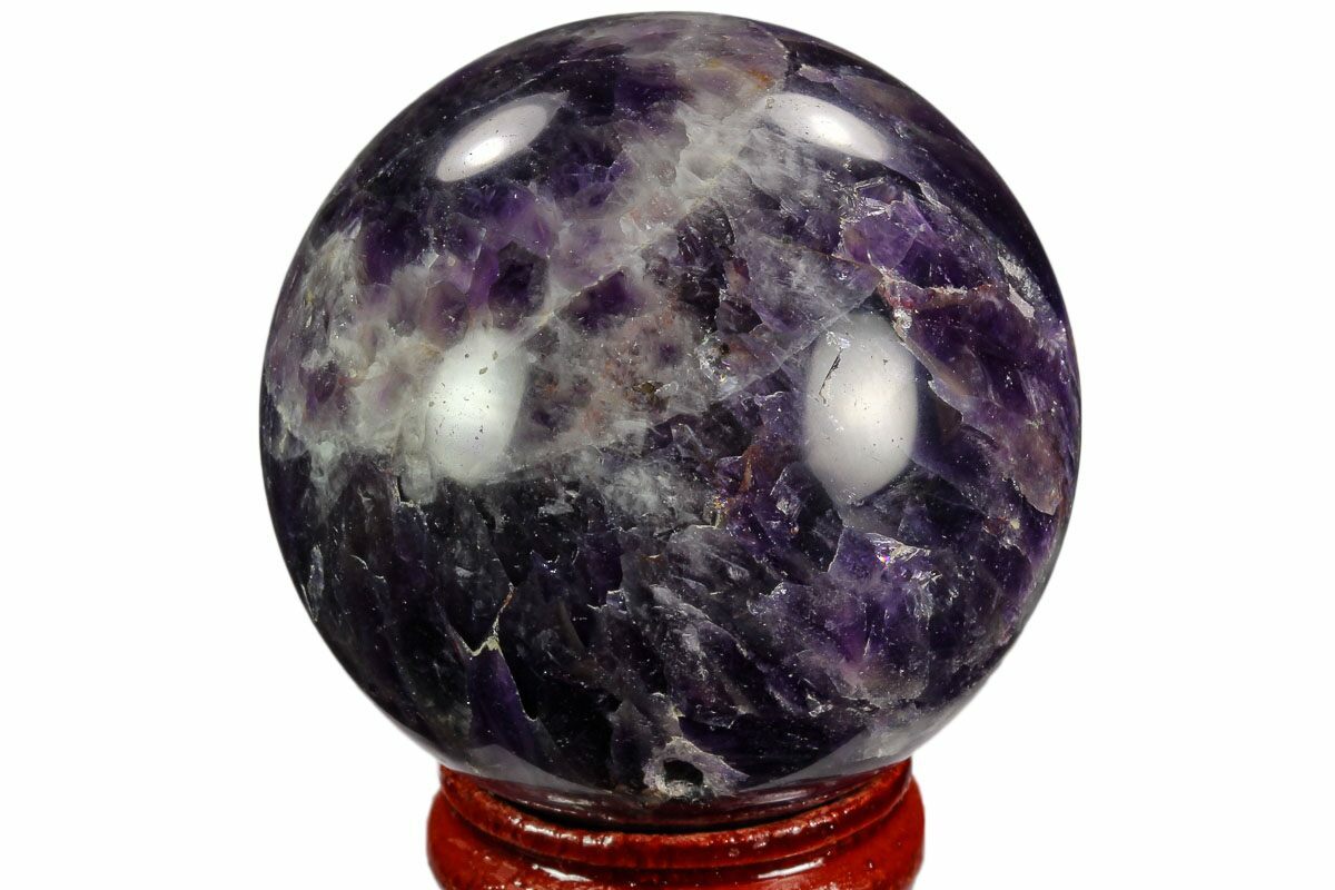 This is a gorgeous, 1.85" wide, polished sphere made from chevron or banded amethyst from Morocco. Comes with the pictured display stand.