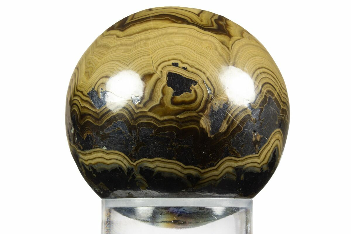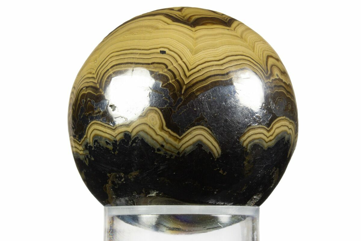 This particular specimen was mined out of the Pomorzany Mine in Olkusz, Poland and contains a beautiful combination of sphalerite, marcasite, and galena. It has been shaped into a sphere and flawlessly polished to a glossy finish all the way around.