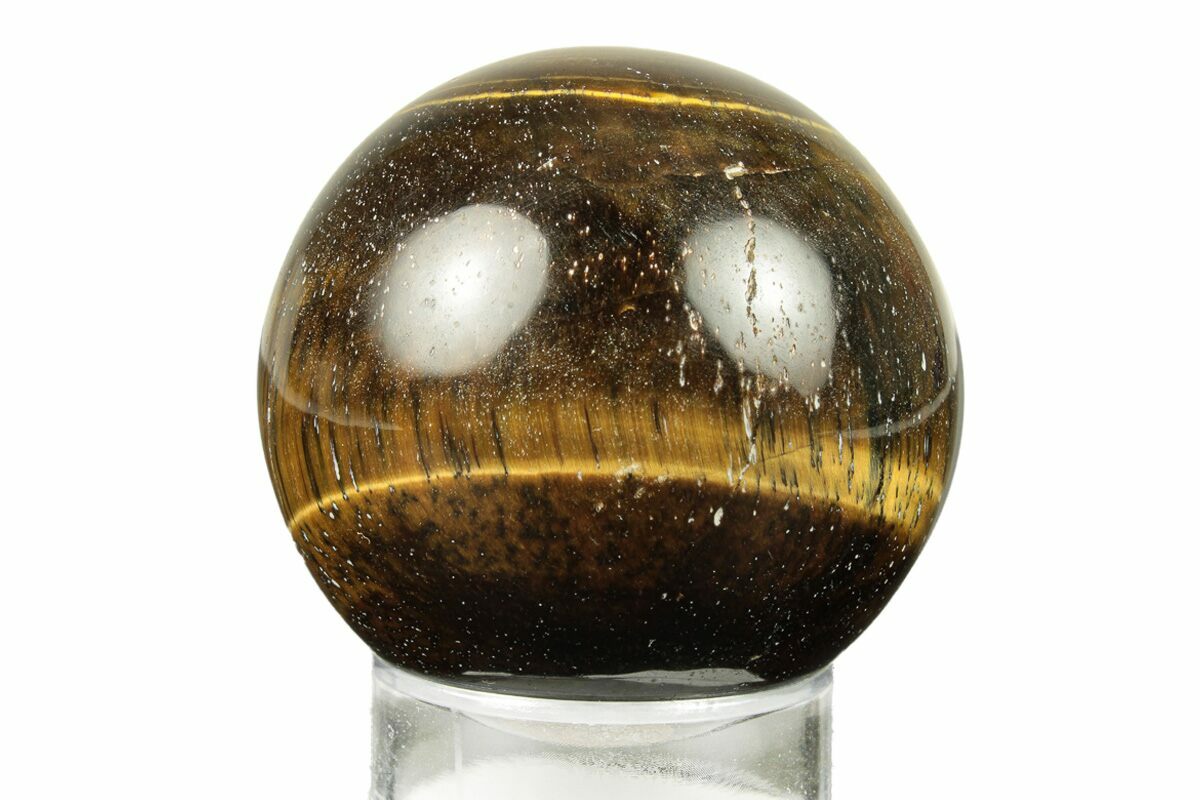 This is a beautiful, 1.85" wide polished tiger's eye sphere. It comes with an acrylic ring stand.